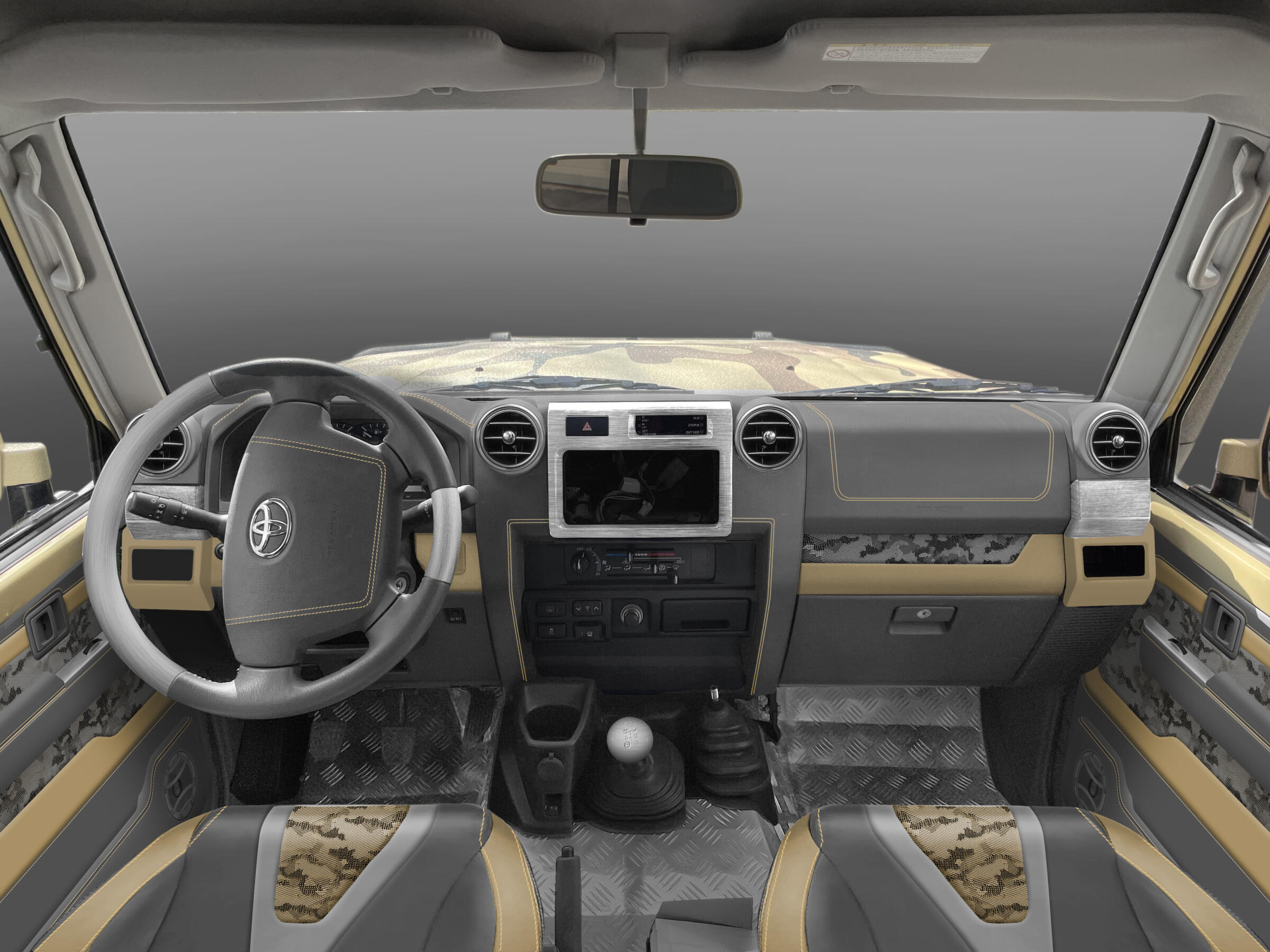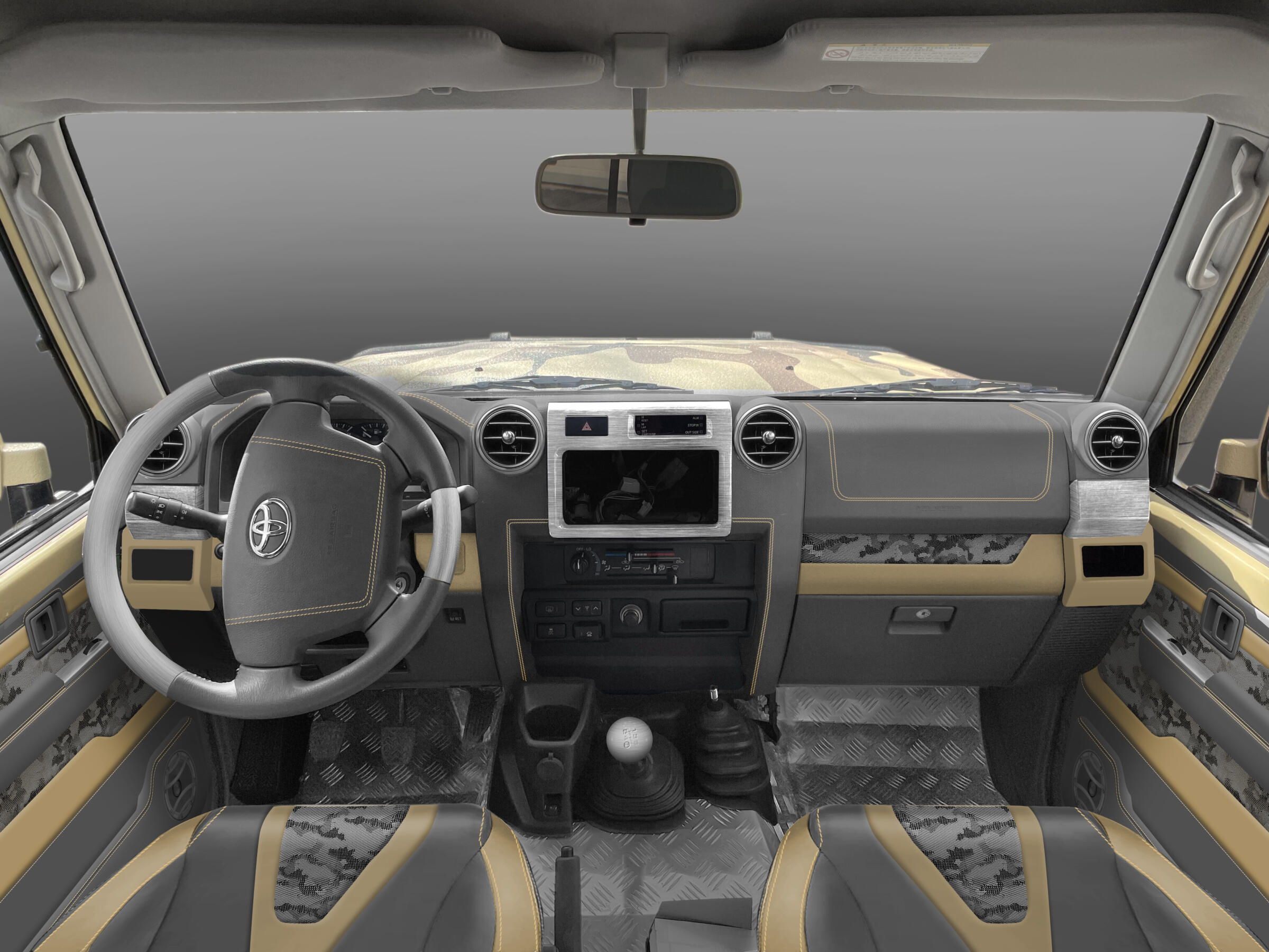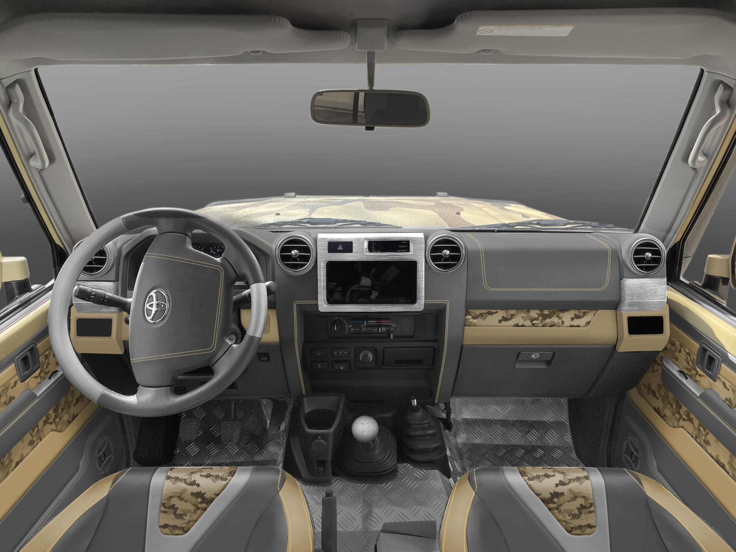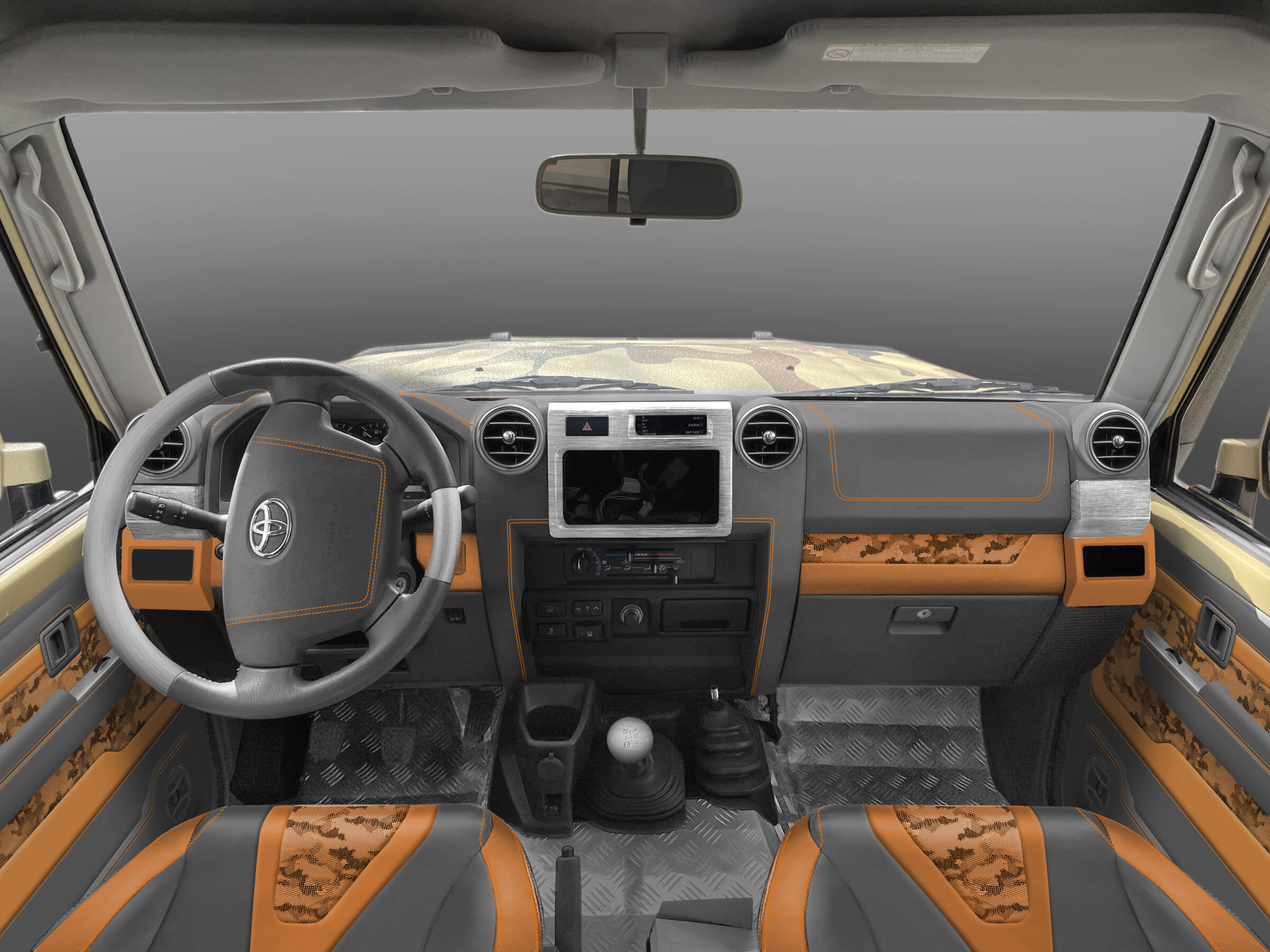 Также в авто использован аквапринт вместо шпонированных деталей и кожа с шелкографией . Рисунок на коже — камуфляж